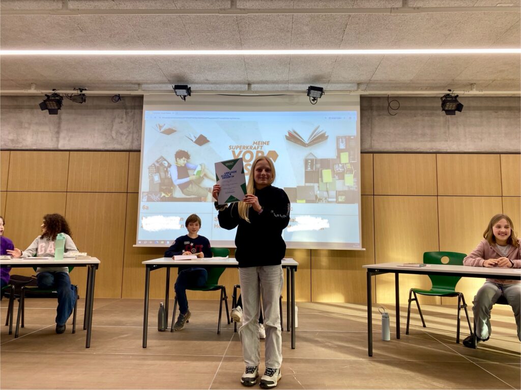 Im ersten Durchgang stellten die Schüler*innen einen Ausschnitt aus einem selbstgewählten Buch vor. Die Schülerinnen der 6a setzten mit „Harry Potter“ und der „Duftapotheke“ ganz auf Magie, während Hendrix aus der 6b die „Schildbürger“ als Klassiker fulminant in Szene setzte und die 6c Alltagsgeschichten voller Chaos und Humor präsentierte – insgesamt war für jeden Geschmack etwas dabei. Nach dieser Runde stand vor allem eines fest: Die Klassen hatten allesamt hervorragende Vorleser*innen ins Rennen geschickt.