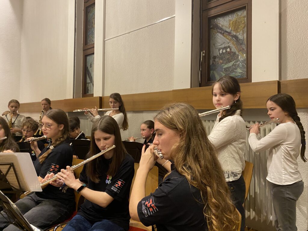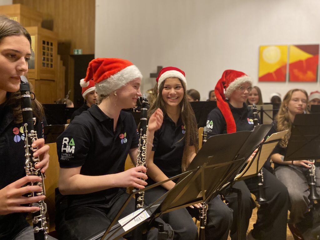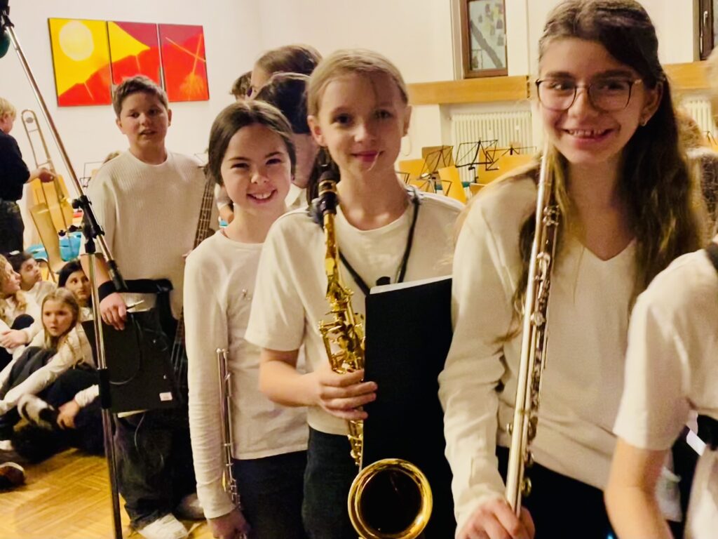 Die Bläserklasse 6 eröffnet das Konzert und beweist eindrucksvoll, was sie in nur gut einem Jahr unter der Leitung von Martin Heckmann gelernt hat. Vom traditionellen „Kommet ihr Hirten“ bis zum flotten „Jingle Bell Rock“: Jeder Einsatz sitzt, das Publikum staunt – und die Musiker*innen selbst strahlen vor Stolz. „Wir waren richtig gut, so gut wie noch nie!“, heißt es nach dem Auftritt.